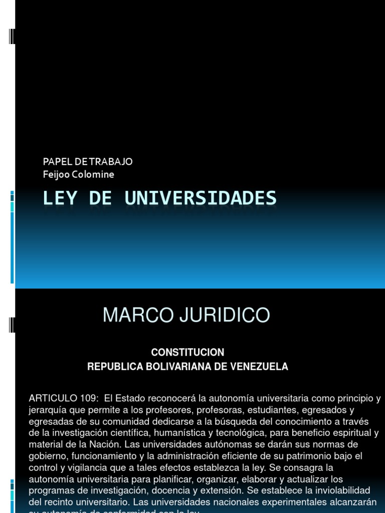 Presentación sobre la Ley Universitaria YouTube Ley De La Universidad En Venezuela el consejo nacional de universidades es el organismo encargado de asegurar el cumplimiento de la ley de universidades vigente, por las. la ley de universidades promulgada con el decreto presidencial del 5 de diciembre de 1958 por el dr. Edgar sanabria da lugar al. La universidad es fundamentalmente una comunidad de. ley de universidades el congreso de. Ley De La Universidad En Venezuela.